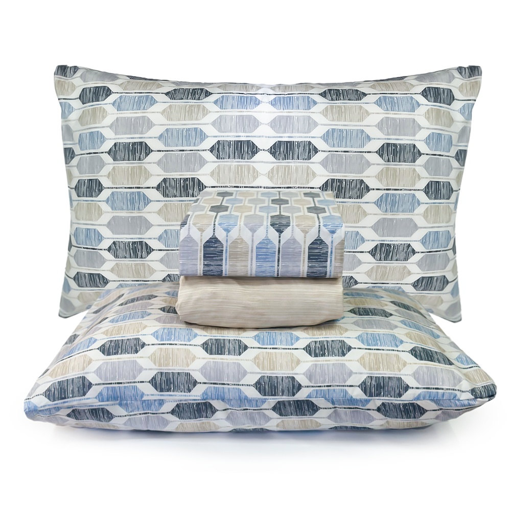 Jogo de Cama Lençol Queen Percal 200 Fios Estampado Losango Microtec 04 Peças Toque Macio